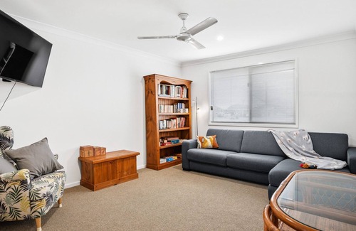 This comfortable two-bedroom, two-bathroom holiday home offers a relaxed coastal escape just a short stroll from the beach and the heart of town. With two separate living areas, each featuring a TV, complimentary Wi‑Fi, ceiling fans throughout, and thoughtful touches like an internal laundry and dual bathrooms, it's a practical and inviting getaway for families or friends. Located in a walk‑everywhere spot, you'll find cafes, shops, and scenic Main Beach within easy reach. Parking is easy too, with ample street options available.