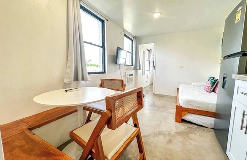 The apartment sleeps up to 4 guests with 1 queen bed and a sofa bed. It features everything you need to feel at home: a fully equipped kitchen, A/C, ceiling fan, TV, private bathroom, and high-speed WiFi. Enjoy your morning coffee or a sunset drink on your private balcony, or fire up the BBQ for dinner on the shared rooftop deck. Guests also have shared access to the pool and pool cabanas —perfect for laid-back days under the island sun.
