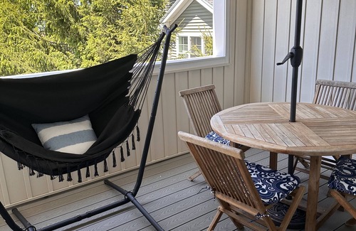 Beautifully updated 1-bedroom, 1-bath condo just one block from Hampton Beach. This bright and open unit features new furnishings, a modern kitchen with granite countertops and brand-new appliances, a cozy dining area, and a spacious living room with a 55” Smart TV. The living space opens to an oversized deck, perfect for relaxing after a day at the beach. The bedroom includes a queen bed, 32” TV, and large closet. Additional sleeping options include a pull-out sofa and queen air mattress, comfortably accommodating 2–4 Adults/Kids. Located on the first floor with elevator access, the unit is steps from restaurants, shops, arcades, and entertainment.