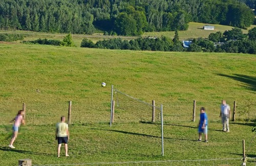 The large, fenced communal grounds offer adults and children a variety of activities, surrounded by an idyllic landscape. Compete with other guests on the volleyball court and let your child have fun with the numerous play options.