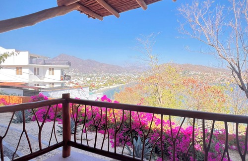 Located in a convenient Colonia, nelocated Puerto Mio/ Cierro del Almacen neighbor hood within minutes of Centro, and Principal beach. Amenities include a private jetted plunge pool. a small gated garden area, and three view terraces offering lots of outdoor space to take in the views of Zihuantanejo bay.. The villa is enclosed with high wall offering utmost privacy and security. The large master bedroom has High ceilings, a comfortable king bed, closet, a wall mounted TV and a full bathroom, Master is separated from the living room through a 2 minute garden path for utmost privacy. Other amenities include a Parotta wood kitchen with granite counter tops, A spacious living room (with a sofa bed -ideal for 1 child), Good Internet, a work desk, andfo nother full bathroom. in the living room . full parotta wood kitchen with granite countertops, and a dining areas (outdoor). The villa is perfect for two or three guests. Please note a charge applies for the 3rd guest. The villa access is through it own entrance winding through a garden path . Enjoy spectacular sunrises as you sip your morning coffee from one of the three terraces, relax and enjoy the view and breeze in the afternoon shade. Walk to the beach and Centro via stairs (100) or take a quick 5 minute combi van just outside the front door.