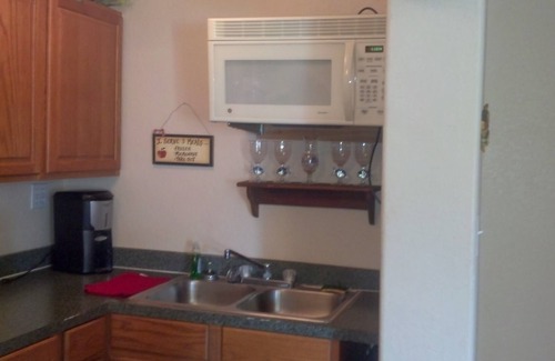 If your looking for a get away with lots of privacy that sits right on the lake then this is it.The sunsets that are artfully designed over the water will put you in a state of relaxation you will love.There is a full kitchen that is quint with a bar and dining table fully furnished.Ice maker full size refrigerator microwave and stereo in kitchen.Free internet wifi and cable tv &out door fire pit grill and dock to enjoy.