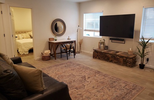 Pet Friendly. NO TAX for 30+ nights. Enjoy comforts of home! Private fenced yard with grill, bistro, & pet relief area. Newer AC/Heat. Covered carport. Desk & high-speed internet. King memory foam bed with lux linens. Large smart TV. Hulu+live & local TV channels. Spacious living/dining area, full kitchen with oven/stove & dishwasher, washer/dryer. Great location near Trader Joes, Tucson Mall, grocery stores, restaurants, bike loop, etc. Read more about the space before booking.