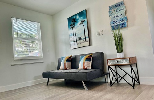 Discover the charm of the Eau Gallie Arts District by staying in this cozy studio, part of a fully renovated historic building. Enjoy scenic views of the Indian River and quick access to the beach, the airport, restaurants, and the entertainment district. Comfort, convenience, and the best of Brevard await you here.