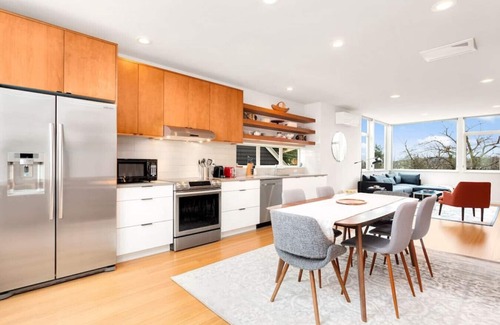 Step right into the open floor-plan living area with polished hardwood floors, where you will find everything needed to create fun, memorable moments during your visit to Seattle, WA.