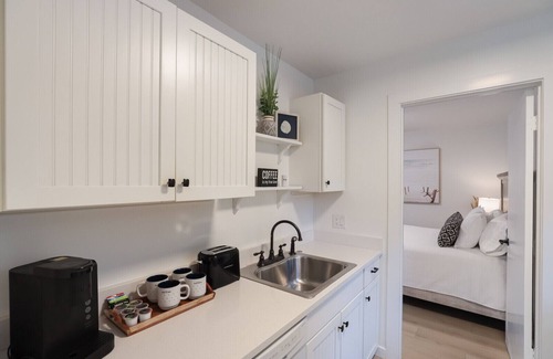 The main living space is an open style layout and an abundance of natural sunlight. The galley kitchen overlooks the great room. Relax in comfort with a cushy sofa in the living area. Through the kitchen is the Queen suite with an en suite bathroom featuring a small shower. This cottage was recently remodeled and comes completely furnished (including a fully stocked kitchen)with refrigerator, microwave, range. Really cute private patio for morning coffee or a glass of wine at night! Off street parking included.