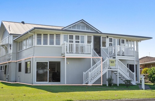 This is one of two spacious ground floor units with sweeping views, overlooking the beautiful Evans River. Both units have been fully renovated and have a lovely fresh, clean feel about them. If you are looking for a quiet, relaxing break where you can see the river from the front door then this would be very suitable. It would be ideal for a small family with plenty of room to pay in the yard, a retired couple or someone just wanting a great getaway. When looking at the property from the road, this is the ground floor unit on the left.