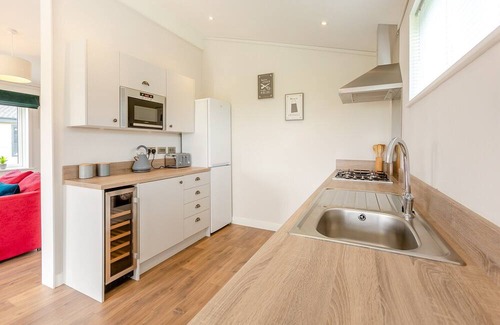 Luxury lodge with one master double bedroom with en-suite shower room and flatscreen TV with a walk-in wardrobe. Second bedroom with twin beds. Family bathroom comprising of bath and overhead shower. Beds made up for your arrival. Open plan lounge/kitchen/dining area with dining table and 4 chairs. Includes cooker, built in microwave, wine fridge, fridge freezer, dishwasher, washing machine and Electric Log Burner fire. Enclosed decking area with garden furniture. Outdoor hot tub. There are 2 parking spaces directly next to the lodge.