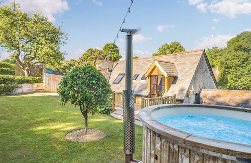 Bathroom: Bath, Heated Towel Rail, Toilet. Oil central heating, gas, electricity, bed linen, towels and Wi-Fi included. Initial fuel for wood burner included. Welcome pack. Back garden with patio, summerhouse, garden furniture and barbecue (gas). Bike store. Private parking for 2 cars. No smoking. Please note: There are 2 steps in the garden.. Nestled in the idyllic village of Milton Abbas, this stunning two-bedroom barn conversion offers the perfect blend of character, comfort, and contemporary style. Beautifully designed with upside-down living to maximise light and views, it comfortably sleeps four and is a luxurious base for exploring the heart of Dorset. Downstairs features a spacious kingsize master suite with a sumptuous en suite drench room and double shower, offering a boutique hotel feel. Upstairs, a second elegant king-size bedroom enjoys breathtaking views over the mature, landscaped garden. The stylish family bathroom boasts a roll-top bath, ideal for long, relaxing soaks. The open-plan living area is light-filled and beautifully furnished, with a modern, well-equipped kitchen, integrated appliances, a generous dining space, and a cosy living room complete with a log burner – perfect for unwinding after a day out. Step outside to a private garden retreat with a charming seating area, a lovely summer house, and your own luxury hot tub for the ultimate relaxation.