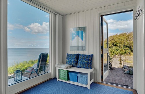 Above the beach sits this cozy cottage with a wonderful view over the Limfjord.