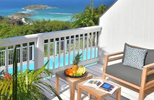 House with 2 bedrooms and 2 bathrooms. This house is in a very quiet spot of the island, with a big terrace facing on Grand Cul de Sac and on Vitet mountain. The house has a private garden with a small pool. Plenty of outdoor space, where you can enjoy the view and feel the ocean breeze. Full of comfort and amenities all new. The house is part of a complex of 4 villas with a residential swimming pool too. 1 private car parking lot is assigned. No Pets. No Parties. No smoking inside the house.