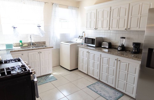 Seashades is clean, well kept and has all the conveniences you expect and more- full kitchen with full size appliances, living and dining room and 2 bedrooms with comfortable beds and air conditioning for a comfortable nights sleep. 1 full bathroom and 1 half bathroom all in a safe friendly neighborhood. Relax and enjoy the shared pool or take a walk to see the neighborhood. Public transportationis a 3 minute walk or rent a vehicle to tour our beautiful island. See our 5* reviews on the companion site or visit seashadesbds.com