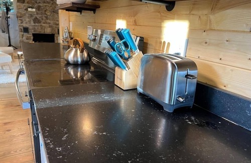 They Tiny Cabin was a Studio for a well known High Country artist and has been remodeled to include a full bathroom with tile shower and well equipped kitchenette. Sleep in a luxurious queen bed with 100 mile views or sit on the nook by the window overlooking Blackberry Gorge toward Charlotte. The tiny cabin features tongue and groove spruce ceilings and walls as well as a sleeper sofa in the living area.