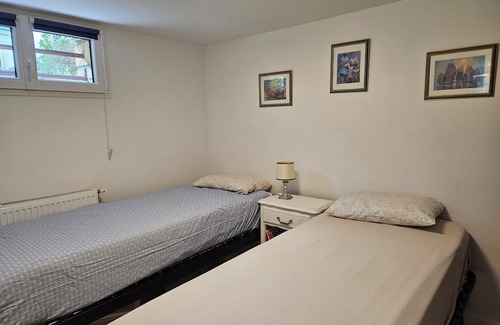 Beyond the large French window, the garden unfolds as a green haven, offering a space for relaxation and play under the open sky. This garden, shared with the owners who have a dog, is a place where nature puts on a show, changing with the seasons. Tenants can enjoy the tranquility of sunny afternoons, relax with a book in the shade of a tree, or share an outdoor meal using facilities such as the barbecue and garden tables.
