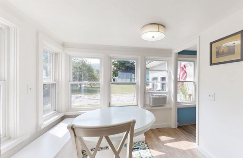 The studio is perfect for that couple looking for privacy, a small family, and even friends. Inside this well-appointed studio, you will discover another fully-equipped kitchen with all major appliances (full-size fridge, stove, oven, microwave, and dishwasher) and even a K-cup coffee maker for coffee enthusiasts. Prepare a delicious meal and then enjoy it at the four-person dining table in the kitchen. This studio's sleeping space is separate from the main living area for added privacy and offers a wall-mounted Smart TV with streaming services and partial air conditioning window units. You are located right in the heart of the charming town of Proctorsville. Restaurants, coffee shops, bakeries, and stores are all within walking distance.
