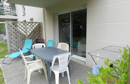in RDJ, T3 (60m2) with 2 terraces including 1 facing south on the 1 entrance with cupboards, 1 living room, dining room with access to the south terrace (garden furniture and deckchairs), fitted and equipped kitchen, 2 rooms with 140.1 bed water room (shower), washing machine.,TV...