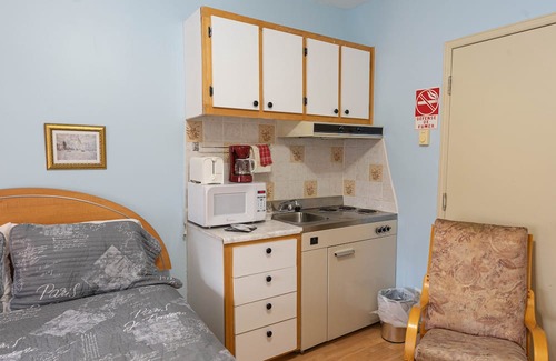 Immerse yourself in the luxury of our Deluxe Double Room for peaceful nights. The equipped kitchen, free WiFi and television offer a distinctive experience. Our lively common areas and friendly dining rooms promise memorable moments. Book now for a warm and welcoming experience at Auberge la Véranda!