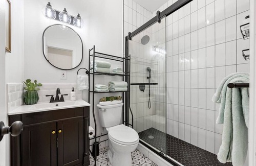 The apartment has a 2 full bathrooms supplied with bath essentials (shampoo, body wash), towels, toilet paper, and a hairdryer.
