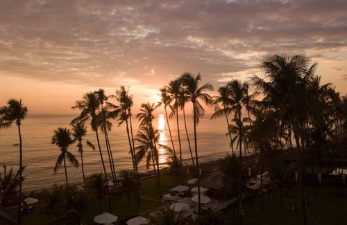 Escape the hustle and bustle of south Bali and treat yourself to an experience you ll never forget by sampling life in real Bali at this wonderfully located villa. The villa itself is situated in a beautiful beachfront garden resort and is nestled between the stunning Mount Agung and the waters of the Bali Straits, themselves described as some of the best diving waters in the world. The villa is just 50m from the sea, and a pleasant walk through beautifully manicured gardens and palm trees down to the water. Enjoy rural and quiet Bali life just moments from your villa while enjoying all the benefits of a five-star villa and resort. Heavenly!
