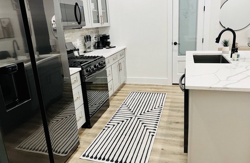 Prepare to unplug and unwind in our modern, gated, 2-story home, centrally-located in the heart of Houston. With easy access to the Medical Center, downtown, NRG (Texans NFL stadium) and all other major sporting venues, University of Houston, Texas Southern, much and more. Your trip will be full of options to explore the city or just relax in the comfort of this open-floor living space. Highlights of this modern house include high ceilings and doors, modern finishes and appliances, Quartz countertops and bathrooms with porcelain tile. Enjoy fast wi-fi to stream your favorite movies on our 75' Smart TV and theatre like surround sound system, utilize dedicated work spaces and free garage parking is complimentary with your reservation. The street on which the house is located has a mix of older and new homes, is relatively quiet and is located just minutes from major freeways. The surrounding streets are in the process of revitalization and the property is surrounded by 10ft fencing with the choice of keypad or app access for gate entry.