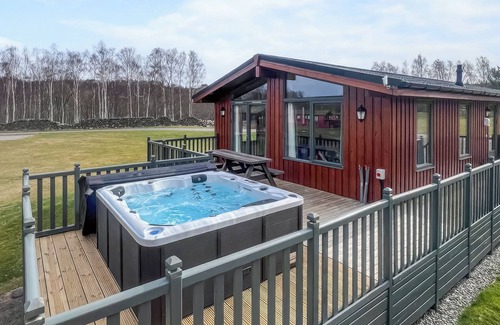 Bathroom: With shower over bath, toilet and heated towel rail (Jack and Jill, accessed via bedroom 2).. Gas central heating, gas, electricity, bed linen, towels and Wi-Fi included. Travel cot and highchair available on request. Welcome pack. . Small decked area with garden furniture. 3-acre landscaped grounds with sitting-out area and garden furniture (shared with other properties on-site). Hot tub. Children’s play area (shared with other properties on-site). Bike store. Private parking for 3 cars. No smoking. Please note: The property has a natural water supply from a borehole.. Cruachan is a beautifully finished, detached Highland lodge, situated almost exactly in the central point of Scotland - a monument marking the point is a short walk down the lane. It’s perfectly located to explore the Cairngorms National Park, but because it is also central in the Highlands and the country, meaning there are amazing sights only a short drive away. With Ben Nevis to the west and Inverness and the Black Isle to the east, you’ll be spoilt for choice for things to do. The village of Newtonmore is only a few miles away where you will find pubs and restaurants as well as a supermarket. Cruachan is a lovely property and would make a memorable holiday home at any time of the year.