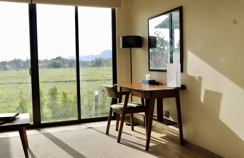 This newly built luxury three-bedroom villa is tucked away in the tranquil paddy fields of Kedawang, just 7 minutes from Cenang Beach and 10 minutes from Langkawi International Airport—offering guests the perfect balance of rural charm and island convenience. centrally-located place.