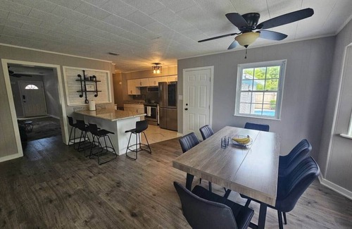 Enjoy the perfect Pensacola getaway at this stylish 3BR, 2BA home with a private pool! Unwind in the spacious living room, cook in the fully equipped kitchen, and relax in the inviting bedrooms. Just 20 minutes from beaches, downtown, NAS, and top attractions, this home offers the ideal blend of comfort and convenience. Whether you're here to explore or just unwind poolside, this is your home away from home. Book now for a memorable stay! - Master Bedroom with king-sized bed and an attached private bathroom. - 2nd Bedroom with a queen bed - 3rd Bedroom with a bunk bed (top bed is a twin and bottom bed is a full-sized bed) - Fully equipped kitchen - Dining Room equipped with a 6-person dining table - Living room equipped with a large and very comfortable couch, coffee tables and TV - Backyard with a large pool The entire house and backyard is open to our guests For any questions or concerns please contact us via the app