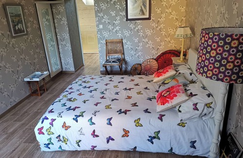 Ideally located in the center of the village, close to all the shops and the bus station serving the beaches and Lorient, our house offers a large bedroom of 18 m2 on the 1st floor with a double bed, adjoining bathroom, separate toilet and a courtesy tray offered. €77/night.