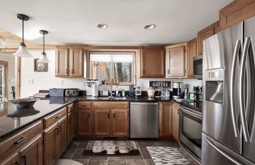 We welcome you, and your furry friends, to enjoy our beautiful home! As you enter the living area you’re welcomed by the massive fireplace made of river rock stretching 8 feet wide and stacked to the ceiling - great for chilly nights or cozying up with a good book. 3 Bedrooms on the main floor and another in the loft area above the living room. The fully stocked kitchen with modern appliances, is ready for your favorite recipes with plenty of prep space and open to the living and dining area - perfect for catching up with family. The spacious deck hosts a large modular sitting area with a propane firepit to enjoy with friends or enjoying some quiet time by yourself. There’s also a propane grill and bar on the deck - great for entertaining or remote work with a great view. Additional seating in the screened deck area with a ceiling fan for warmer months, offering the perfect bug-free picnic area. Located in the Woods Resort, you’ll enjoy access to the gym, spa, swimming pools, indoor tennis and pickleball courts, and so much more!
