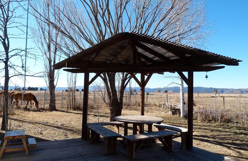 Dine on the back deck that looks directly across the fields to the La Plata Mountains. Out here in the country we have very dark skies providing a rare night vision; it's ablaze with stars.
