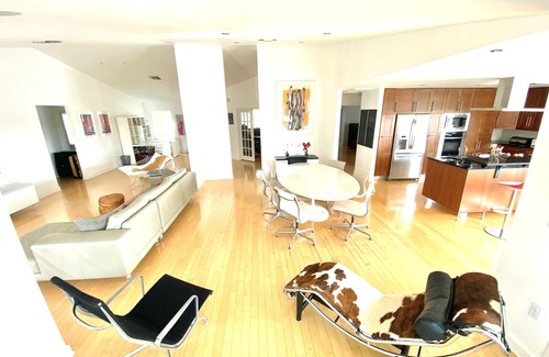 The home is furnished with high-quality design furniture and includes a gourmet kitchen with modern appliances such as a convection oven, gas cooktop, and a reverse osmosis water filtration system. Additional amenities include hurricane impact windows, a Weber propane grill, office space with high-speed WiFi, and memory foam mattresses. For entertainment, there are four Roku-equipped TVs.