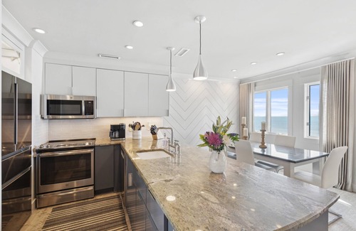 The Penthouse at Windswept offers 3 bedrooms, 3 bathrooms, a generous floor plan, and easy access to the beach and surrounding attractions.