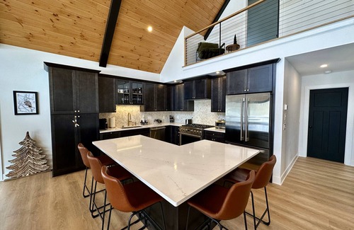 This beautifully designed 4-bedroom, 3.5-bathroom house with a game room, secondary living room, additional kitchenette and oversized mudroom, completed in 2024, offers the perfect blend of modern comfort with classic mountain touches, accommodating up to 10-12 guests.