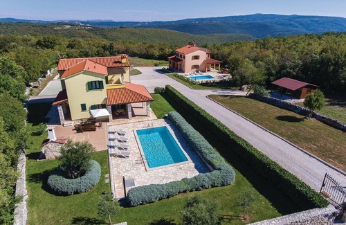 Beautiful cottage on a large plot shared with the house CIO009. Furthermore, the houses share the driveway, a basketball court, lawn for badminton, volleyball, soccer and a children's playground.But they are sufficiently separated from each other and separated with a green hedge for own privacy, which is ideal for stay two larger families or groups of friends. In the garden there is a covered terrace, where they can spend the leisurely hour in the shade. Here is also an outdoor pool, ideal refreshment on hot summer days. The rooms are very modern and functionally furnished, with comfortable furniture. Here you will stay in the village of Kunj, only 8 km from Labin. This medieval town is also known as a town of artists. Here are held exhibitions and concerts of classical music in the open air. Visit the konobas of the area and taste the delicious local dishes and wines and get to know the country, its people and gastronomy. Visit also the popular place Rabac nearby, where there are beautiful beaches.