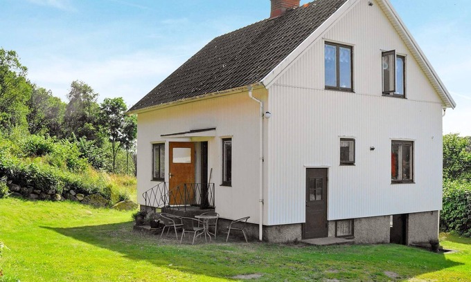 This is a spacious and cosy holiday home, nestled in a lovely rural and seaside location just outside of Hälleviksstrand, to the west of Orust. The house has plenty of space and much of the interior is decorated in a style typical of the 70’s, with its wallpapers and colour choices. On the first floor you will find the living area, with a large sofa bed and a TV-area, and wall-to-wall carpeting. There is also a dining room with a table and chairs, suitable for both eating and for playing games in the evenings. The house has a comfortable kitchen, including all the amenities required to cook a delightful meal, a dining area and a WC. Upstairs there are two bedrooms, one of which has a double bed and the other two single beds. In the basement there is a new bathroom with a shower and a WC, as well as a laundry room. There is also a fold-up bed suitable for children. The house is located on a former farm, and you have a lovely view of the meadows and open fields. There are several patios where you can sit and enjoy your holiday over a good bite to eat and a cool drink. It's only 2,5 km to the charming village of Hällevikstrand where you can stroll along the beach and enjoy a visit to one of the local cafe’s or, if you’re interested, visit the port side pub. There is also a nice beach with cliffs, sand and a pier. You can take the ferry from Tuvesvik to the charming fishing village of Käringön, with its rich culture as well as several good restaurants and other places for entertainment. If you prefer fresh water, it is only 2 km to Lake Vassdals. The house is quite secluded with the nearest neighbour being 10 m away. The areas pictured are from Hälleviksstrand, 2.5 km away, and from Lake Vassdal, 2 km away. Welcome to a wonderful holiday in this beautiful countryside location!