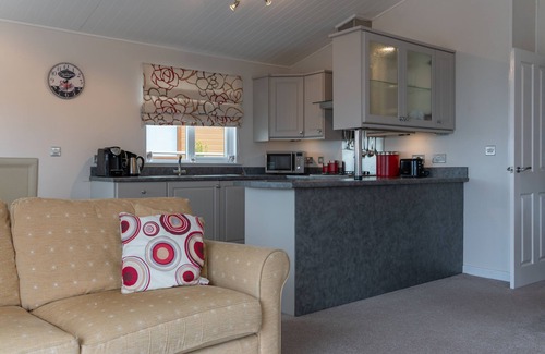 Upon entering 46 Meadow View, the hallway opens into an open plan living/dining/kitchen space, enjoying extensive views over the surrounding countryside and coast. The well equipped kitchen provides for all your needs with fridge/freezer, gas hob and electric oven, microwave, coffee maker and dish-washer. After sharing a meal round the six seater dining table, snuggle up on sofas to watch films on the Smart TV. The three bedrooms offer flexibility for families or friends: one twin, one double with en-suite shower and a bunkbed room. The family bathroom is equipped with shower over bath and WC. Towels and linen are provided. Decking outside the lodge houses garden furniture to enjoy alfresco dining and one car parking space is provided next to the lodge. Dogs are welcome but on request only and charges may apply.