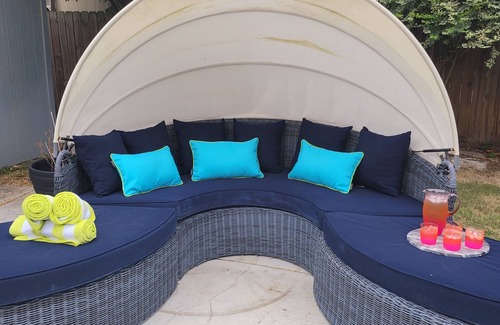 Your home away from home in Pflugerville with 4 bedrooms. This delightful house offers a brilliant stay for guests. With 1 king bed, 3 queen beds, and an extra trifold queen mattress, you'll have plenty of space to relax and unwind. The house features a yoga matts, Fiber WiFi internet, and all the amenities you need for a comfortable stay. Whether you're soaking in the hot tub, enjoying a refreshing swim in the pool, or playing games in the arcade, the home amenities will create the perfect travel destination for fun memories. We'll be available to answer any questions while you stay at our place.