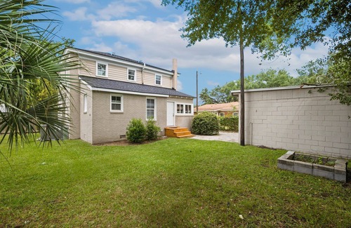 Important Things To Know About The Home - The fireplace in the home is sealed and for decorative purposes only, so please do not attempt to use it. Bathrooms include a half bath in the downstairs guest room and two full bathrooms upstairs—a hallway bath with a shower/tub combination and a private en suite in the primary bedroom with a walk-in shower. Please note that the only showers are located upstairs. The upstairs layout features the primary bedroom with its en suite, a guest room with a queen bed, and a smaller guest room with two twin beds that's ideal for children. The downstairs guest room has its own half bath but no shower. In the summer months, the upstairs can be a few degrees warmer than the first floor due to the age of the home, but supplemental window AC units are provided for comfort. Guests will also enjoy a fully fenced backyard, perfect for pets or outdoor relaxation.