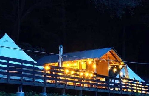 Kumono Glamping places importance on privacy and each site is equipped with its own toilet and shower / Spend time in the nature of Miyama Town