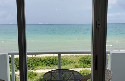 5 star completely remodeled ocean front 2/2 condo in quaint Surfside, Miami Beach. Panoramic 8th floor ocean views with white sand beach just steps away. Short walk to downtown cafes, restaurants and shopping. Close to the famous South Beach.