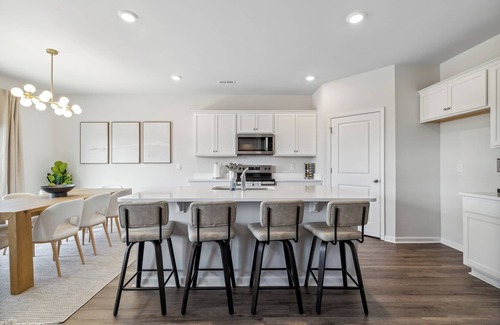 Living Room: Gather in style on a plush sectional, complemented by velvet swivel chairs and a modern coffee table. Neutral tones, cozy throws, and elegant wall art make this space both inviting and sophisticated.