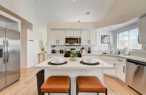 This spacious 5-bedroom, 2-bathroom single-story home strikes the perfect balance between comfort and entertainment. With a relaxing, modern decor and fun game options, it’s an ideal space for both unwinding and socializing. The home offers convenient 2-car garage parking, along with free street parking. Located in a peaceful, friendly neighborhood, it provides a tranquil setting for you to enjoy.