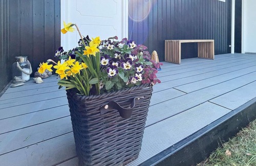 Layout: Kitchen(cooker(electric), coffee machine, microwave, dishwasher, fridge(+ freezer)), Living/bed room(TV(german television channels, danish TV channels (DR1 and TV2), norvegian TV channels , swedish TV channels), high chair), bedroom(double bed, children's bed), bedroom(double bed), bedroom(double bed), bathroom(tumble dryer, shower, toilet, washing machine), shower(outside), heating(electric), terrace, garden furniture, solar energy, air to air heatpump