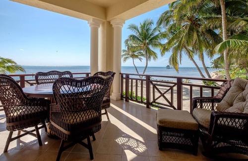 Pompano 602 is a spacious two-bedroom, a two-bathroom, beachfront condo that is perfect for two couples or a family. The master bedroom features a king-sized bed, veranda access and an en-suite bathroom with both a shower and Jacuzzi. The second bedroom features two twin beds, with a shower/tub combination in the bathroom. This suite offers 1669 sq. ft. of living space including a dining area, great room, and a fully equipped kitchen. High ceilings and rich mahogany accents, add to the modern design and comfort of the villa, making it a true home away from home. The expansive veranda provides a stunning panoramic view of the turquoise Caribbean Sea, swaying coconut trees and the world's second-largest barrier reef, located less than a mile offshore.