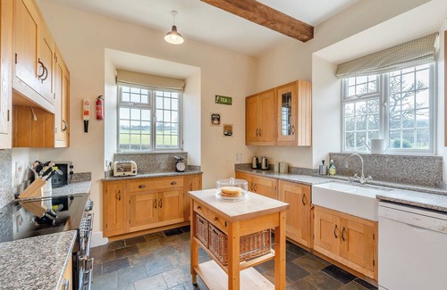 Retaining many original features, including ornamental fireplaces and splendid high ceilings, the property benefits from the addition of a games room in its cellar. Two comfortable living rooms, both with open fires and Freeview TV, means there’s plenty of space for everyone to relax after a busy day exploring the local area. The large, well-equipped farmhouse style kitchen is perfect for cooking a holiday feast, throw open the French doors and let the light and air spill in. With 7 bedrooms over the first and second floor, sleeping 14 guests plus up to 4 more on sofa beds, plus 6 bathrooms, this property really is a fantastic choice for a families or friends to get together and celebrate. With its own pretty, large walled garden, with lawned area and flower borders, it stands in the grounds of the owners’ 650-acre organic dairy farm; there are lovely walks from the doorstep amid the farmland.