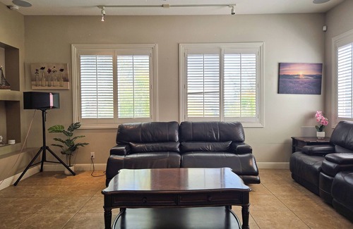 Whether you’re hosting a family reunion, celebrating a milestone, or enjoying a friends’ retreat, you’ll have everything you need: a private pool (not heated), a private karaoke system in the living room, a game room, multiple lounge areas, and outdoor dining spaces for unforgettable moments under the California sun.