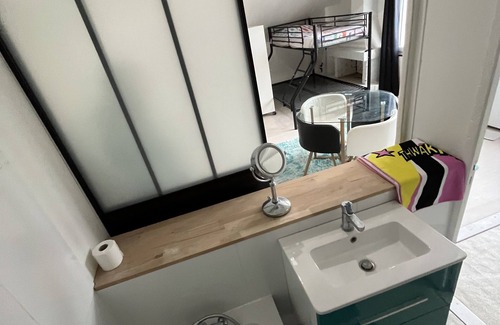 All your team can leave near Paris with a single site "as home". This house in Poissy is ideal for your organization : 8 all furnished tiny flats (14 to 35m2, TV & washing machine & kitchenette & shower & toilet, and complete bath for 2 of them), a large ground floor with a big kitchen room (10 p.) and a large debriefing room (15p. and transformable to collective sleeping room of 10 more sleepers) with air conditioned. 18 min to Paris (Saint Lazare station) or La Défense by train. Near the downtown center (5 min), the highway (4 min), the regional hospital CHI (4 min), the PSG football club (6 min), and 5 min to the Carrefour Commercial Center (a big mall). Famous Saint Germain Forest for runners.