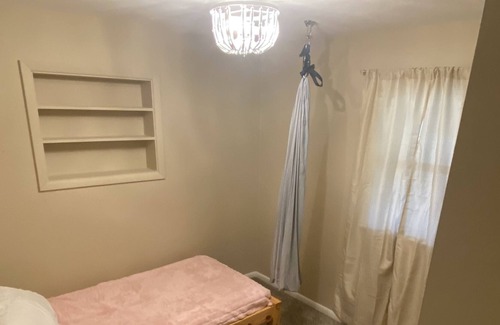 The main bedroom features a queen size bed with brand new mattress. Two other bedrooms are available for use, one featuring a full bed, and the other room has a twin bed along with a built-in hammock chair. This home is child friendly!
