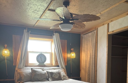 Your A&E Cabin is the perfect escape from city life.. This countryside retreat has a fully equipped kitchen, cozy living room, 1 master bedroom with queen bed, 1bedroom/office with a twin trundle bed. The cabin is filled with both modern and rustic charm.