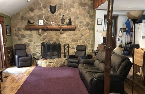 Welcome to eagle and bear country! This charming 3-bedroom home is nestled in private woods along the Allegheny river. The 3 bedrooms, 2 bathrooms can accommodate up to 6 guests. There is a king sized bed in the main bedroom, a full sized bed in the middle and last bedrooms. A roomy open floor plan on the main floor gives ample space for entertaining. Central air conditioning and a wood-burning fireplace help to make any season cozy and comfortable.